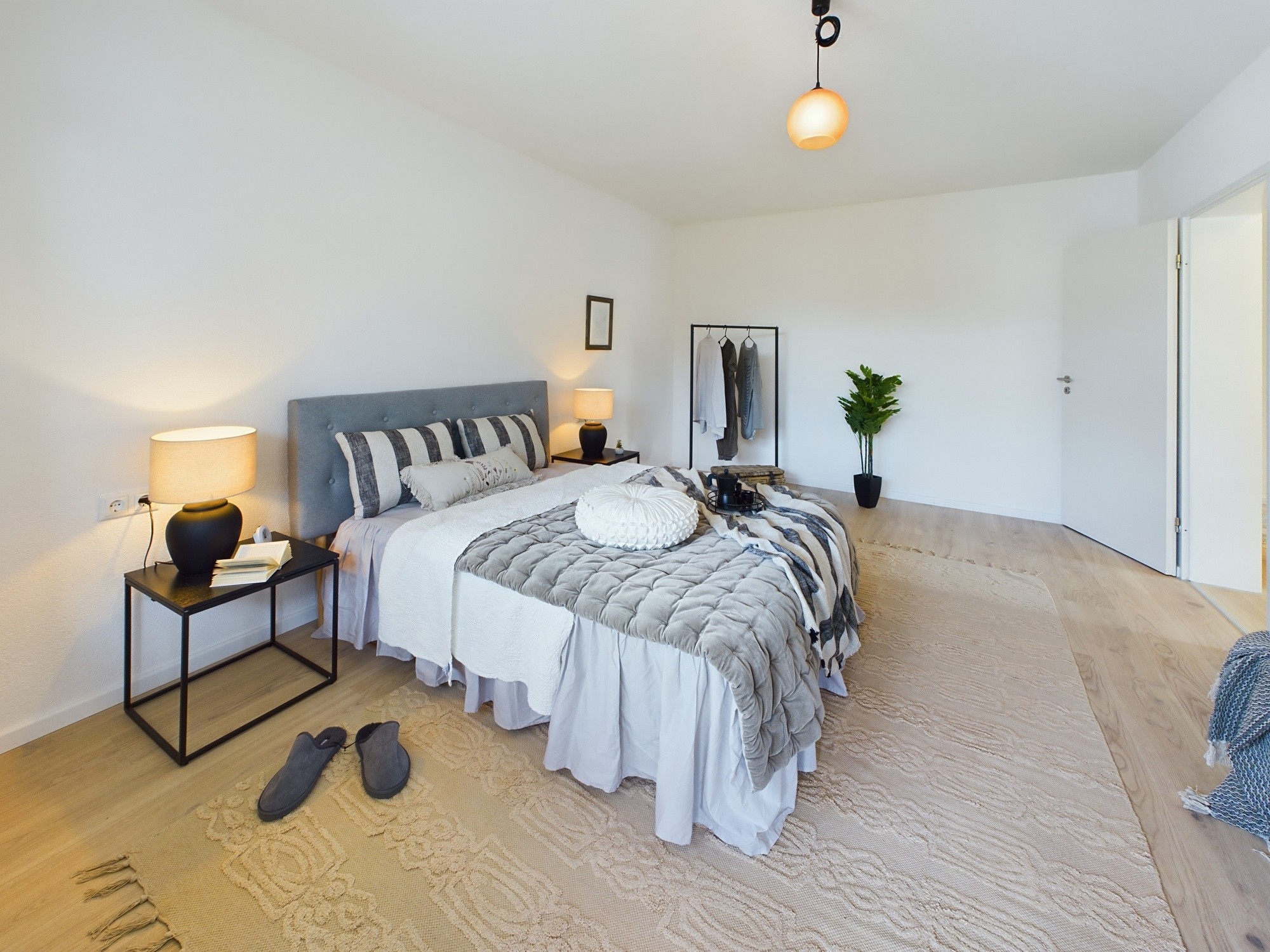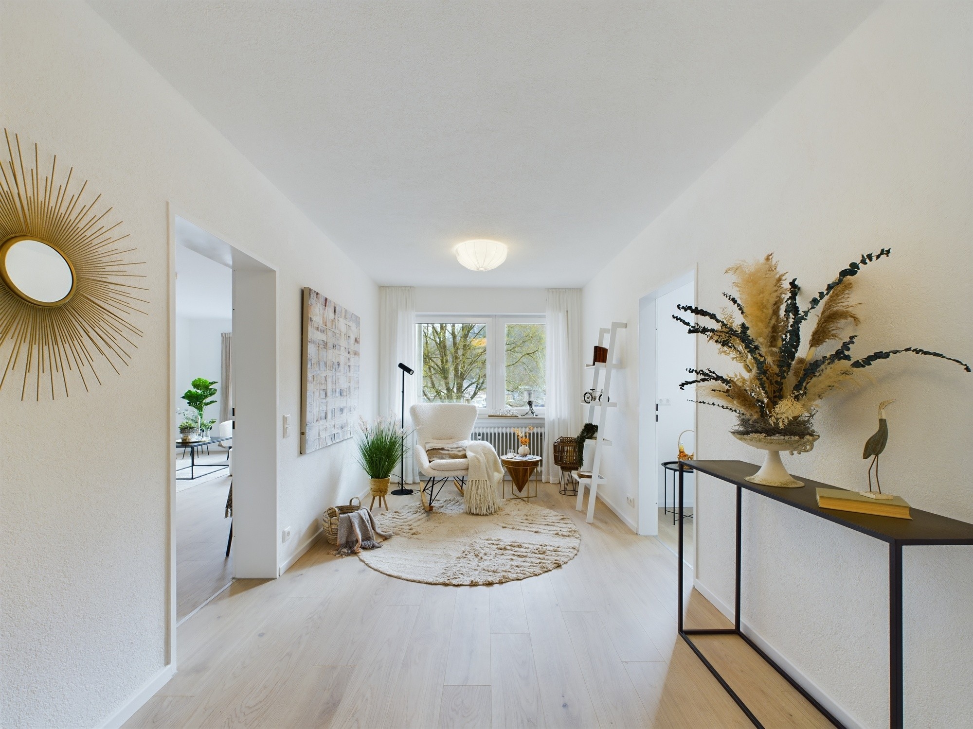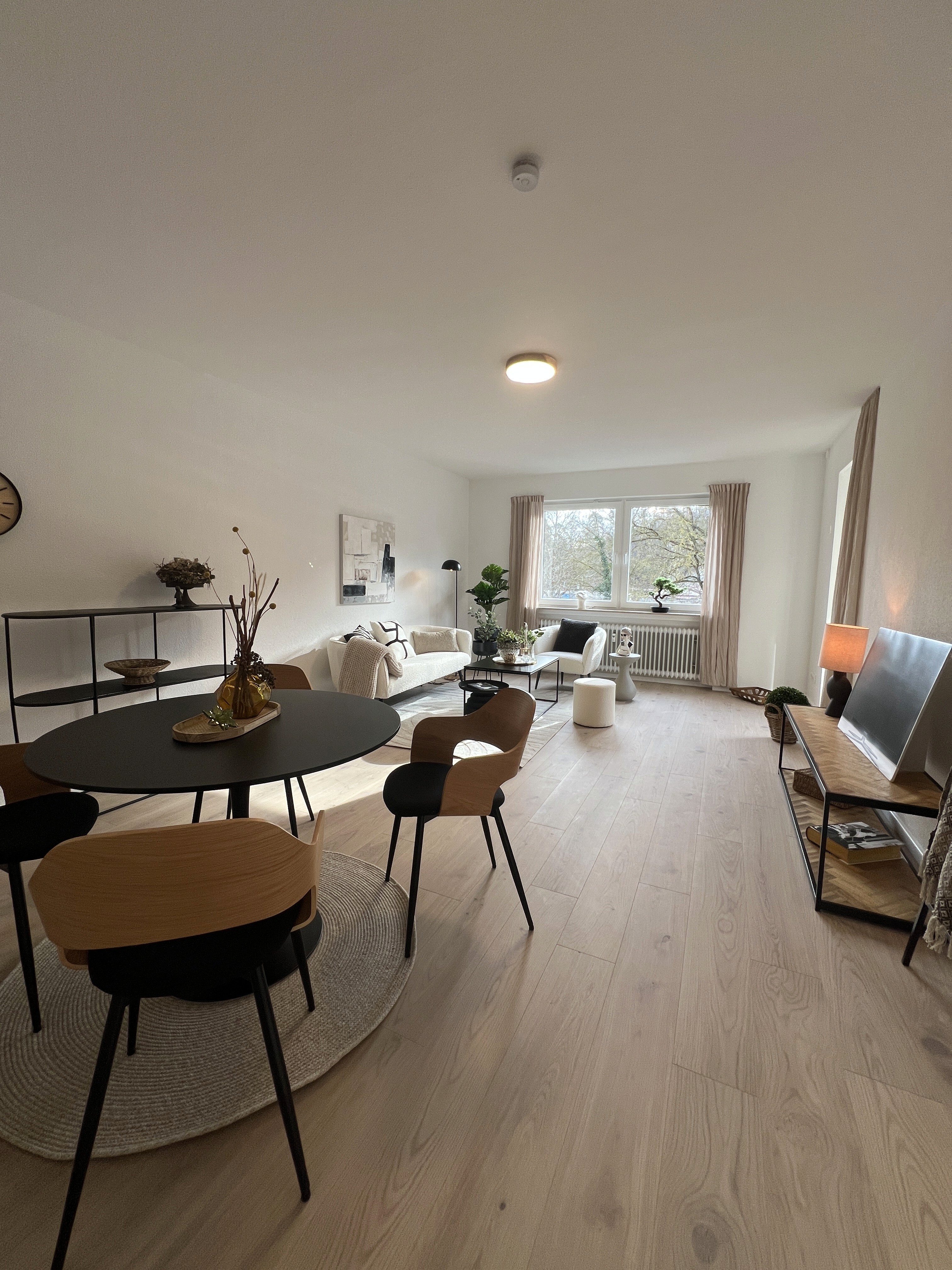 Diese Wohnung, die einst dunkel und wenig einladend wirkte, strahlt nun in neuem Glanz. Die alten Böden wurden entfernt, und stattdessen sorgt nun ein moderner Laminatboden für eine frische, zeitlose Atmosphäre. Helle, sorgfältig gewählte Wandfarben lassen die Räume optisch größer und freundlicher wirken. Neue Fenster bringen mehr Tageslicht in die Wohnung und verbessern gleichzeitig die Energieeffizienz erheblich.