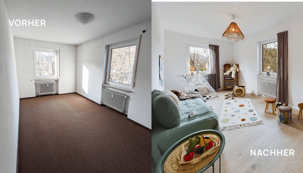 Aus einer dunklen, wenig einladenden Wohnung wurde ein helles und stilvolles Zuhause, das mit durchdachter Gestaltung und hochwertigen Materialien überzeugt. Besonders das liebevoll gestaltete Kinderzimmer bringt jetzt Wärme und Geborgenheit – sanfte Farben, ein freundlicher Bodenbelag und eine harmonische Einrichtung schaffen eine Umgebung, in der sich Kinder rundum wohlfühlen. Die neue Küche verbindet Funktionalität mit modernem Design: Klare Linien, durchdachte Stauraumlösungen und hochwertige Oberflächen sorgen für ein angenehmes Kocherlebnis. Ein echtes Highlight ist das stilvolle Badezimmer in Naturfarben. Warme, erdige Töne, natürliche Materialien und eine moderne Ausstattung machen aus dem einst tristen Raum eine Oase der Entspannung. Das Ergebnis: Eine perfekt auf die Bedürfnisse der Bewohner abgestimmte Wohnung mit Wohnkomfort auf neuem Niveau.