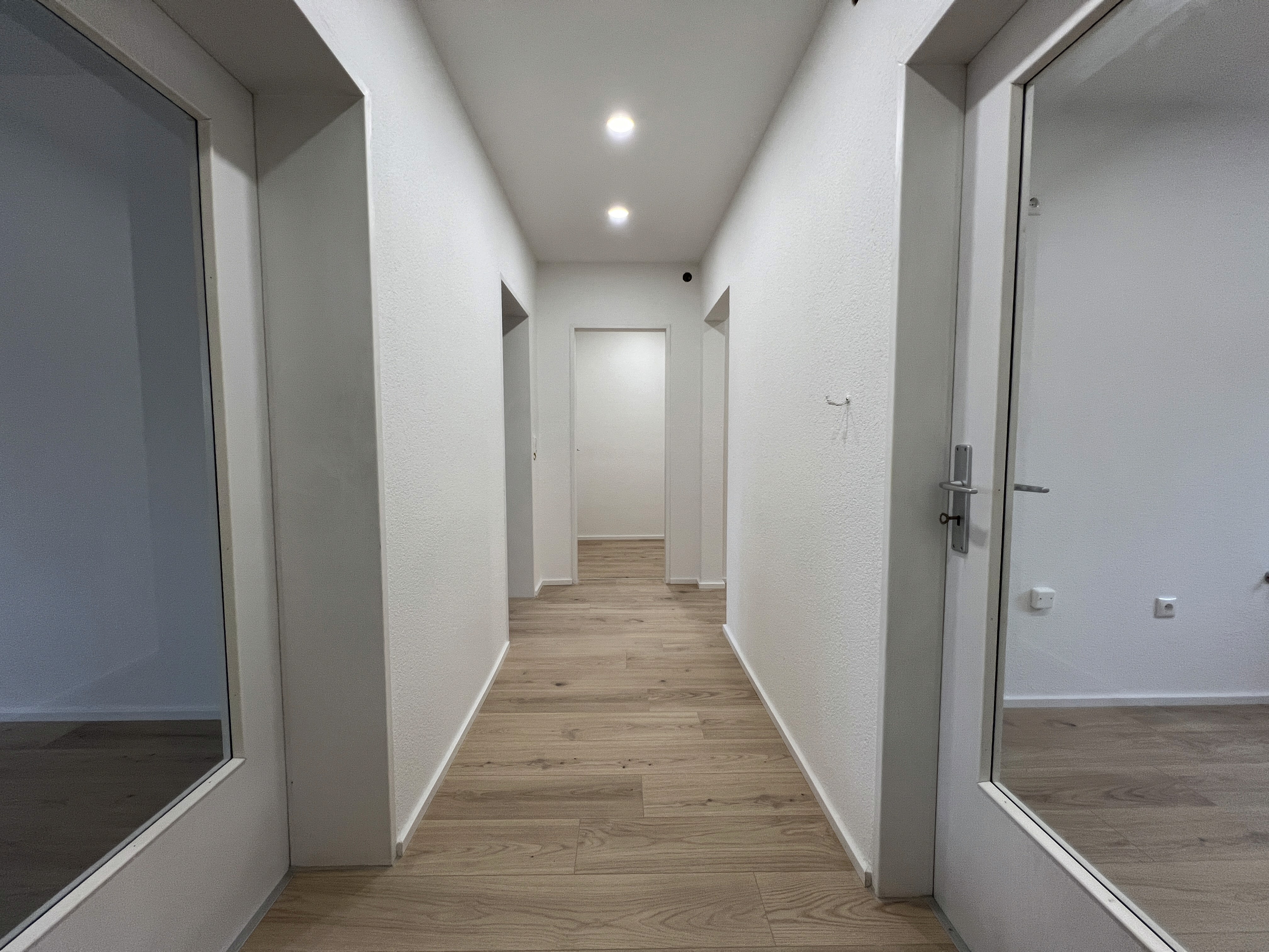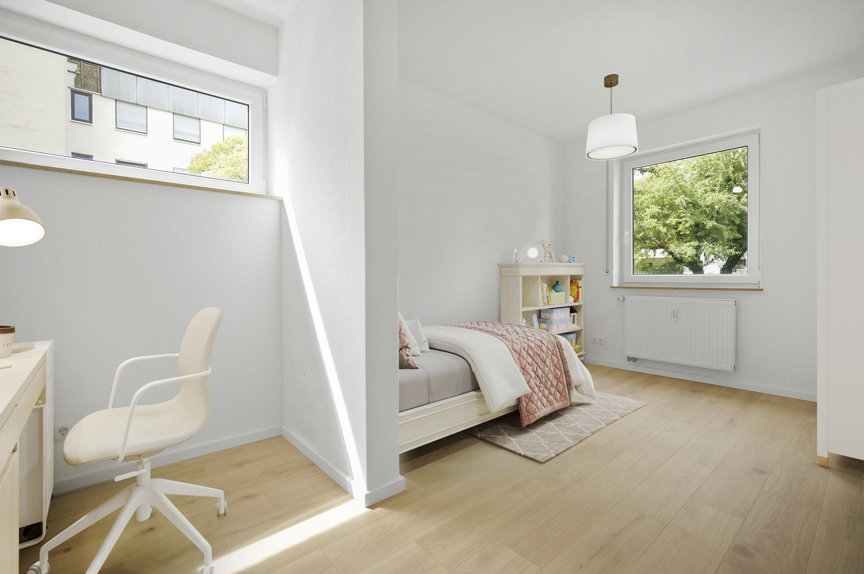 Der neue Laminatboden bringt nicht nur Frische, sondern auch eine zeitlose Eleganz in jedes Zimmer. Die Wände wurden in hellen Farben gestrichen, wodurch der Raum größer und offener wirkt. Der Wechsel von alten Böden zu einem modernen Design hat der Wohnung eine völlig neue Atmosphäre verliehen. Das veraltete Bad mit kleinen blauen Fliesen und die Küche mit dem alten schwarzen Holz gehörten zu den Schattenseiten dieser Wohnung. Doch mit der Renovierung wurde auch diesen Bereichen neues Leben eingehaucht. Neue Fenster bringen nun mehr Tageslicht ins Innere und verbessern gleichzeitig die Energieeffizienz der Wohnung. Das Ergebnis: Ein lichtdurchflutetes, modernes Zuhause, das durch hochwertige Materialien und eine harmonische Gestaltung einladend und gemütlich wirkt.